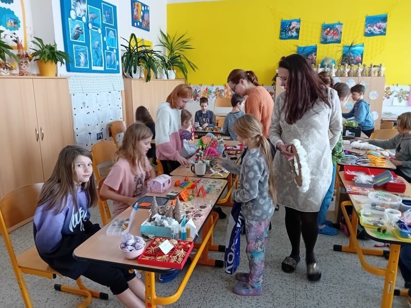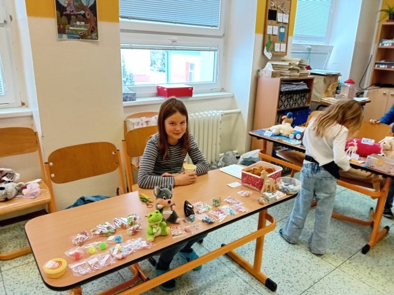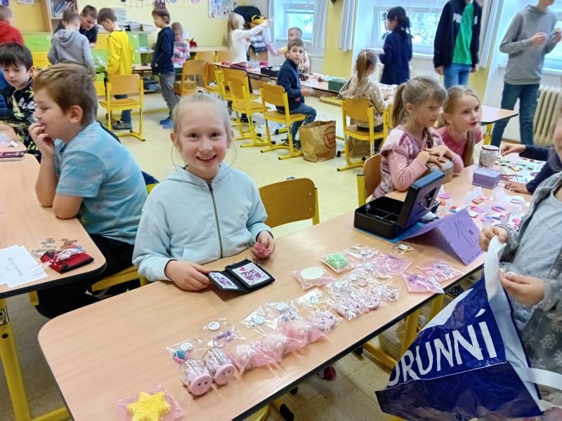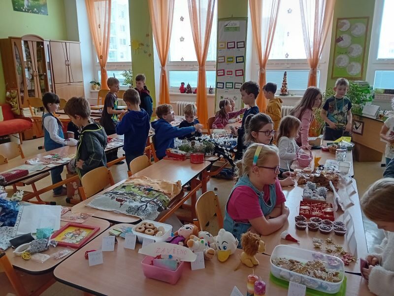 Ve středu po obědě se třídy v 1. patře školy proměnily v tržiště. Zde si děti připravily svoje „krámky“ se zbožím všeho druhu. Byly to perníčky, vánoční andílci a suché vazby či ozdoby, svíčky, mejdlíčka, náušnice, náramky, ale také drobnosti z papíru, figurky a plyšová zvířátka. Zkrátka věci, které chtěly předat dál. Nechybělo ani sladké občerstvení v podobě vánočky či dobrého moučníku. Prvňáčci „okoukli“, jak to na Bleším trhu chodí a těší se, až budou umět počítat, aby mohli také za rok prodávat. Velkou pochvalou této akce je, že se jí nezúčastňují jen děti, které chodí do ŠD, ale všichni, kteří mají zájem. Tak mezi prodávajícími najdete děti z 1. i 2. stupně ZŠ. Tradiční a oblíbenou akci navštívili všichni, kteří měli o něco zájem – žáci, pedagogové, vedoucí a provozní pracovníci naší školy. Přišli se podívat i rodiče a prarodiče…