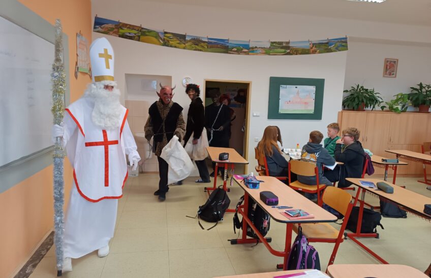 Je právě 5. prosinec, dlouho to očekávaný den. A čerti už jsou tu! Tradičně obcházejí třídy na prvním stupni, ale v tomto roce udělal Mikuláš s čerty výjimku a navštívil i některé třídy druhého stupně. Naprosto rozumím tomu, že navštívil naši třídu 7.A. To není třída dětí, o kterých bychom nevěděli. Jedná se o akční třídu, kde energie neustále vibruje a postupně se zesiluje. A tak nám Peklo přišlo sdělit, že o naší třídě ví. A takhle to u nás vypadalo!