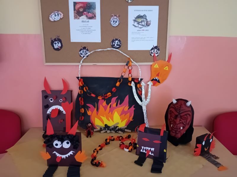 Začíná advent…doba příprav, českých tradic a velkého očekávání…Koho, čeho? Třeba i čerta a Mikuláše. I my, děti školní družiny a tvořivých kroužků, se chystáme na mikulášskou nadílku a tak vyrábíme, zdobíme, zpíváme a učíme se básničky, hrajeme tematické hry… Vyprávíme si, jak to chodilo dříve a jak prožíváme tento čas dnes. Držte nám palce, ať nikoho z nás čert neodnese! A čertovské slavnosti si do syta užijeme!!!