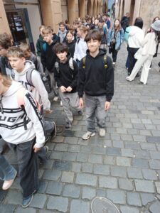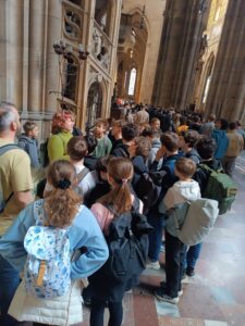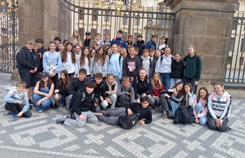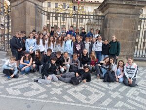 V úterý 14. dubna jsme vyrazili se všemi dětmi ze sedmých ročníků na dějepisnou exkurzi do Prahy navštívit Pražský hrad. Tato cesta byla zakončením dlouhodobějšího projektu zaměřeného na dějiny Prahy a Pražského hradu. V rámci projektu pracovaly děti ve škole ve skupinách. Každá skupinka dostala přiděleno jedno téma. Jednalo se o tato témata: Chrám sv. Víta, Starý královský palác, bazilika sv. Jiří, Zlatá ulička a královská cesta. Děti si musely najít důležité informace, písemně je zpracovat, vytvořit lapbook a ústně celé své snažení odprezentovat. Za odměnu mohly děti odjet do Prahy a navštívit všechna místa, která jsme poznali teoreticky ve škole. A protože se dětem jejich projekty povedly a všichni odvedli spoustu poctivé práce, došlo v Praze i na návštěvu Palladia, kde se děti občerstvily, něco malého si pokoupily a spokojené se vracely k autobusu, který nás k večeru přivezl ke škole. Únava byla docela na místě, po Praze jsme našlapali za celý den deset kilometrů. Celý projekt včetně exkurze se vydařil, všichni jsme si tento den naplno užili.