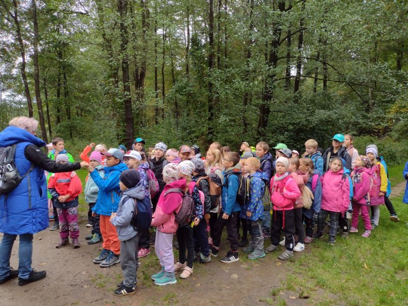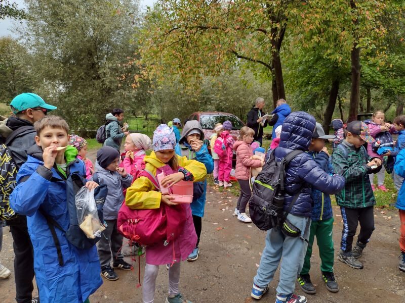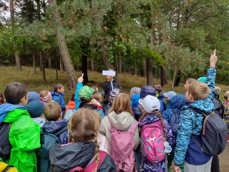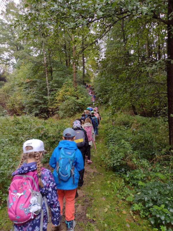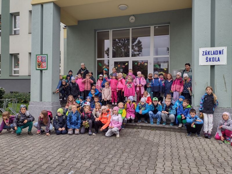 Tak letos to bylo opravdu dobrodružství! 1.celodružinová akce Co vypráví les, se odehrála v pátek 26. 9. od 13,00 do 17,00 hodin. Bohužel zcela jinak, než bylo v plánu a na co jsme se s dětmi těšili – les, zvířata v oboře, domečky pro lesní skřítky a hry v lese…Počasí si s námi hrálo jako kočka s myší a pláštěnky jsme využili na 100%. Obloha byla zamračená a často uplakaná, ale my jsme to nevzdali a maximálně si odpoledne užili. Pro procházku jsme zvolili méně bahnitý terén a to město Sezimovo Ústí, přesněji řečeno uličky na Nechybě, které nás dovedli až na Ovčín, do „Háječku“ a ke Kozskému potoku a Hilton. Kde to šlo a počasí trochu dovolilo, jsme si něco zahráli. Podařilo se nám zrealizovat štafetovou hru se sběrem barevných papírků, hru Na smysly, přírodní kvíz a lesní hádanky, bavili nás i přesmyčky či nápodoba lesních zvířátek. Svačina u Kozského potoka se piknikem nazvat nedala, do mokré trávy a do bláta by si nikdo nesedl, ale byla příjemnou vzpruhou před výstupem k Hiltonu. Zdolání místního kopce byla snad nejlepší aktivita naší výpravy. Díky správnému oblečení a obutí jsme se v pořádku a nepromočeni, vrátili do školy a zbyla nám i chvilka na podvečerní hraní ve družině. Dětem déšť nevadil, ba naopak a jejich velmi pozitivní závěrečné hodnocení akce, bylo jasným znamením toho, že se nám to povedlo a líbilo se nám… v přírodě… na cestě… spolu… za deště!