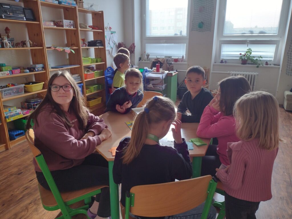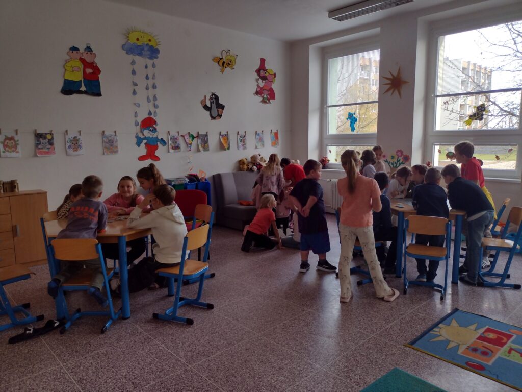 Na vše v duchu fair – play dohlíží vychovatelky a starší kamarádi ze školy, tentokrát to byli žáci z 7.A, 7.B a 7.C. „Rozhodčí“ pečlivě připravují stanoviště, motivují děti ke hře a pozorně sledují průběh či připomenou pravidla, když je třeba…