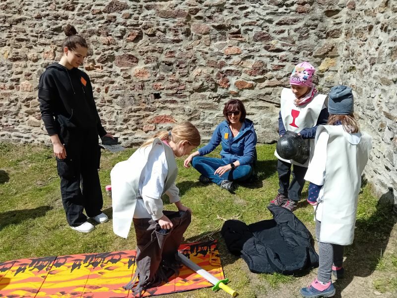 Dne 26. 4. jsme se v 13,00 hodin vydali v husitských oděvech, které si většina dětí sama vyrobila, za zvuku bubnů „dobýt“ Kozí hrádek…je to tradiční a velmi oblíbená akce Školní družiny. Takovouto mimořádnou akci není lehké naplánovat a zrealizovat! Proto nám se zajištěním bezpečnosti a jednotlivých stanovišť pomáhají všechny paní učitelky z I. stupně, pan učitel Rak a i někteří žáci a žákyně z II. stupně ZŠ. Za to jim moc děkujeme! Kromě příprav her na samotný hrad, předchází akci i činnosti, které realizujeme s dětmi již ve družině např.: seznámení se s historií a i současností Kozího hrádku, vyprávění o době husitské, zpěv tematických písní či stavby z kostek na téma Kozí hrádek. Vyprávění legend a pověstí…