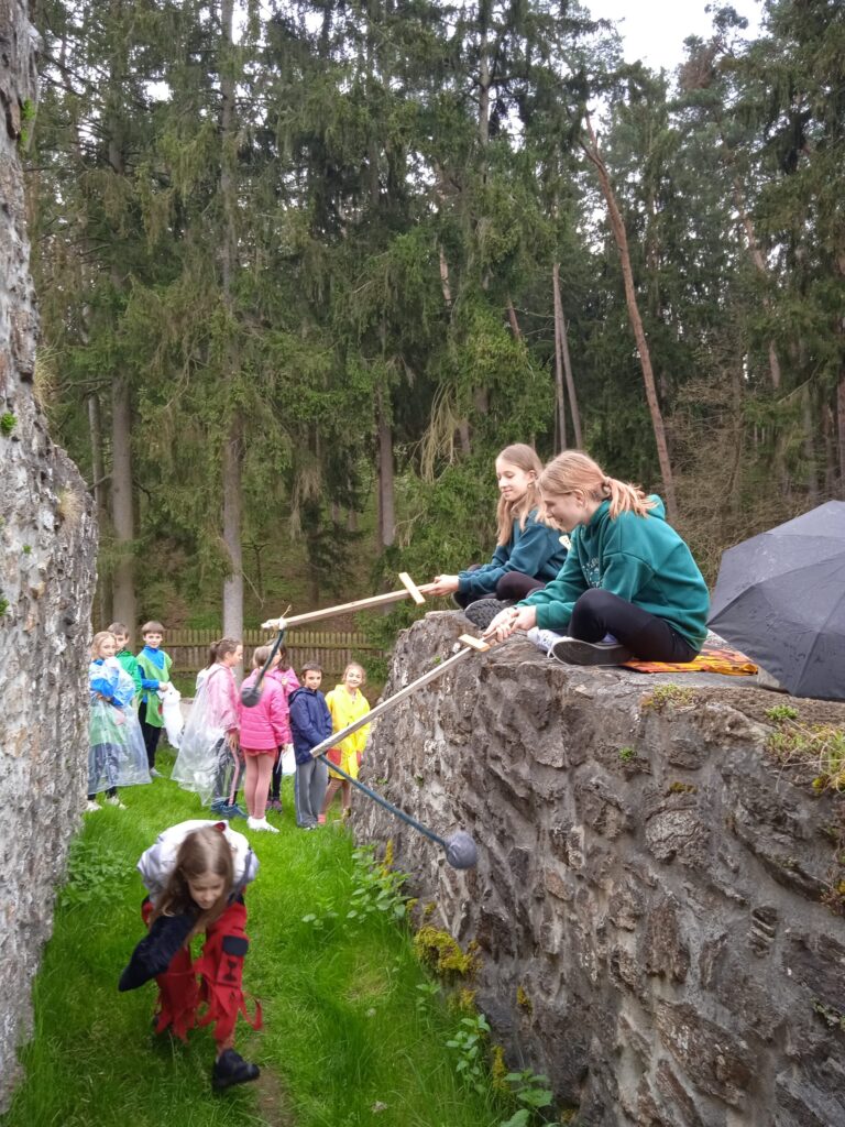 Dne 6. 5. jsme se vydali v husitských oděvech za zvuku bubnů „dobýt“ Kozí hrádek…Tradiční a velmi oblíbená celodružinová akce se konala naposledy v roce 2018. A o to jsme měli větší radost, že letos mohla opět proběhnout! Takovouto mimořádnou akci není lehké naplánovat a zrealizovat. Proto nám se zajištěním bezpečnosti a jednotlivých stanovišť pomáhají všechny paní učitelky z I. stupně a i někteří žáci z II. stupně ZŠ. Za to jim moc děkujeme! Kromě příprav her na samotný hrad, předchází akci i činnosti, které realizujeme s dětmi již ve družině např.: seznámení s historií a i současností Kozího hrádku, vyprávění o době husitské, zpěv tematických písní či stavby z kostek na téma Kozí hrádek. Vyprávění legend a pověstí…
