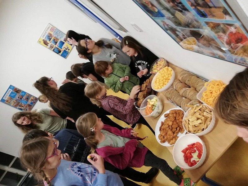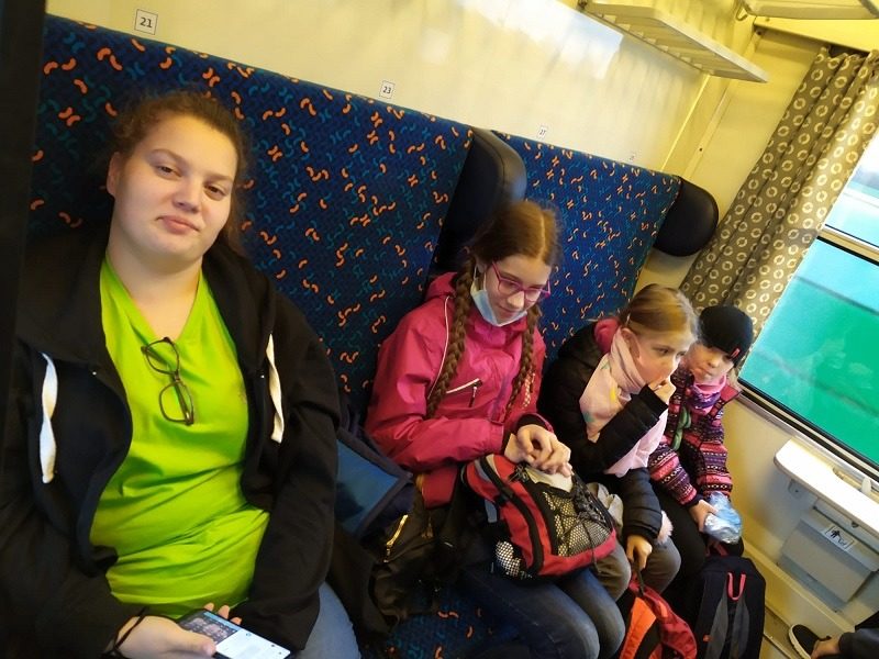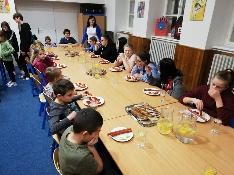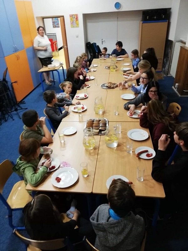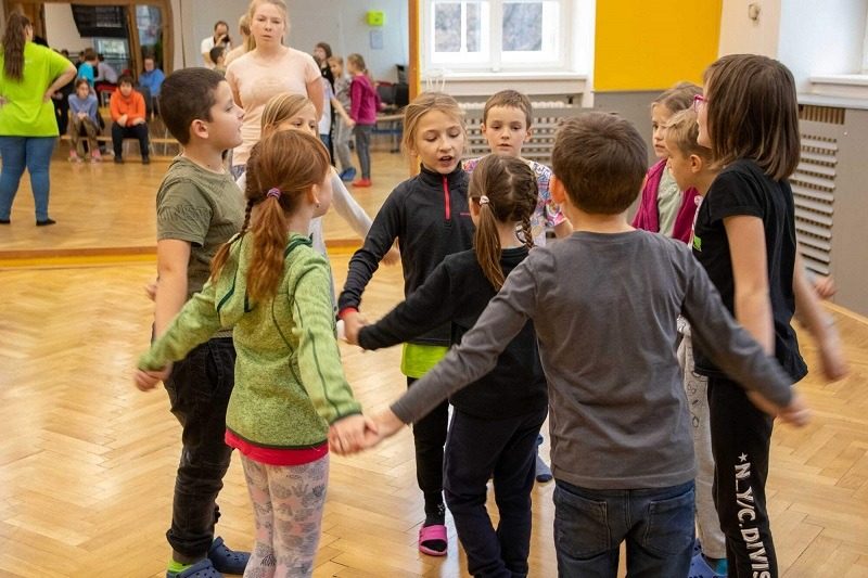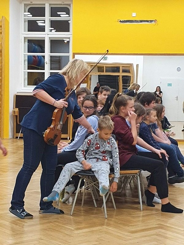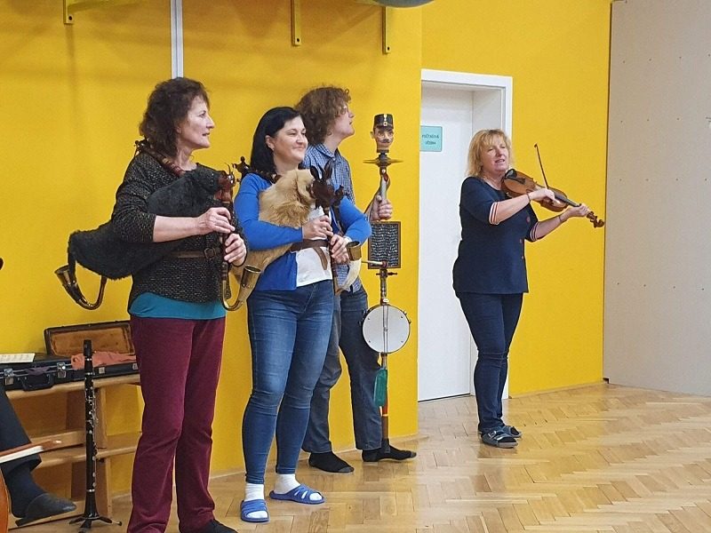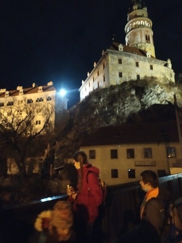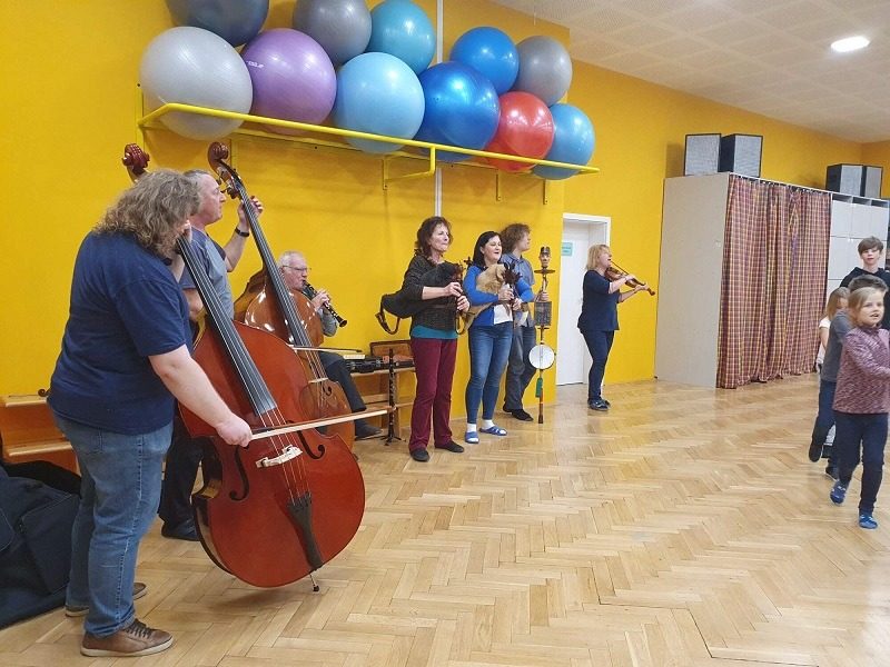 Mohli jsme se konečně za nimi rozjet. Cesta vlakem byla sice dlouhá, ale pro někoho to byl zážitek, neboť to bylo poprvé. Na nádraží na nás čekala dudačka krumlovského souboru Zlatka, která nás vedla večerním městem a temnými zákoutími Krumlova za doprovodu jejího příjemného vyprávění. Po příchodu do domu dětí a mládeže nás čekala doslova hostina a poté hudební hry s nácvikem našeho společného programu. Po nich byl čas uložit se ke spánku. Spát ve spacáku na karimatce vedle svého kamaráda bylo pro mnohé dalším jedinečným zážitkem. Ráno zabalit, nasnídat a vyrazit vstříc historickému městu, kde byla pro oba soubory i jejich muzikanty připravena pátrací hra. Užili jsme si to všichni a našli to, co jsme měli. Po vynikajícím obědě nás čekalo vystoupení pro veřejnost. Povedlo se a my odjížděli s dobrými pocity a dojmy.