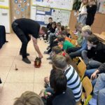 Na naší škole se uskutečnil koncem prosince vzdělávací program s názvem Plnou parou vpřed, který žákům poutavou a originální formou přiblížil fenomén parní energie a její význam v historii lidstva. Tento zábavně-poučný projekt nabídl jedinečný pohled na sílu páry prostřednictvím funkčních modelů, které názorně ukazovaly technický pokrok napříč dějinami. Programu se zúčastnily 3. a 5. třídy společně se třídou 4.B. Celým programem nás provázel Míla Vaváček, jehož nadšení pro téma a poutavý výklad významně přispěly k celkově velmi pozitivní atmosféře akce. Děti měly možnost nejen parní modely zkoumat, ale také se aktivně zapojit. Prezentace parních vynálezů vnesla do dnešní uspěchané doby nostalgické kouzlo starých časů a všichni v tu chvíli zapomněli na novodobou technologii.