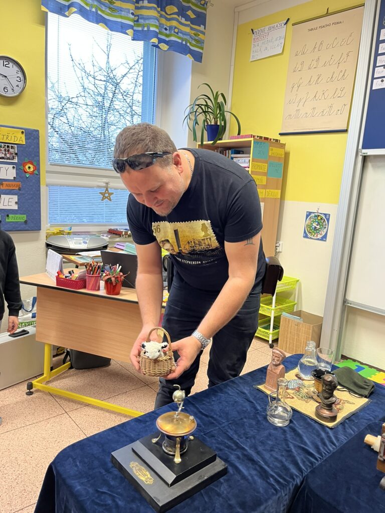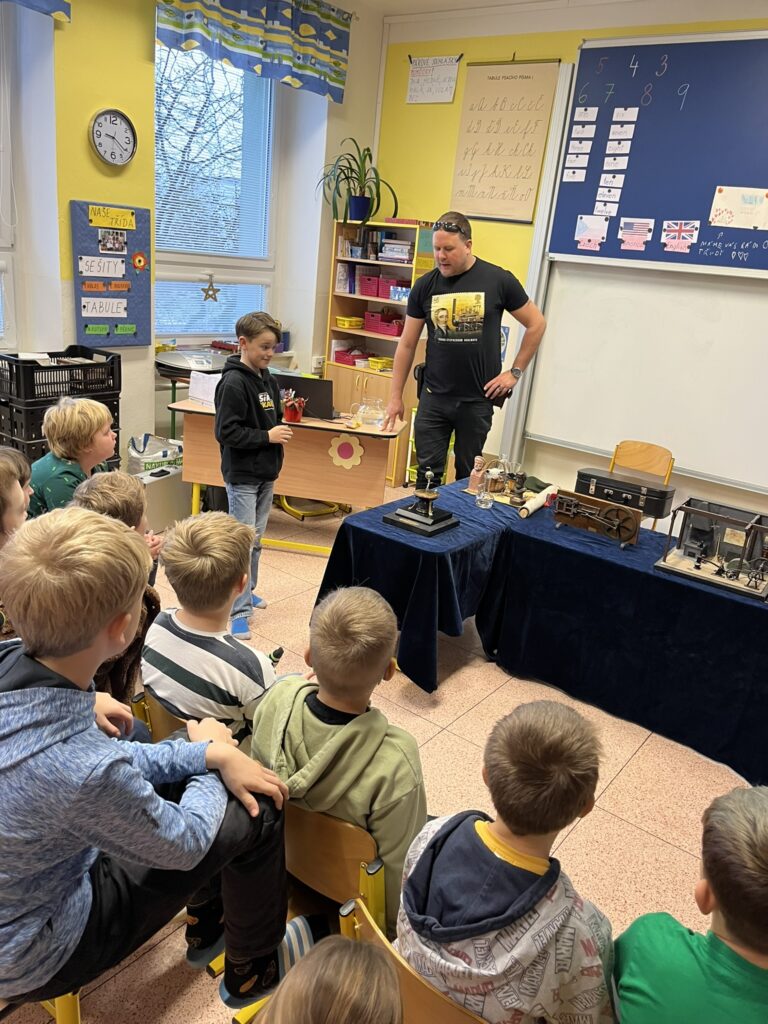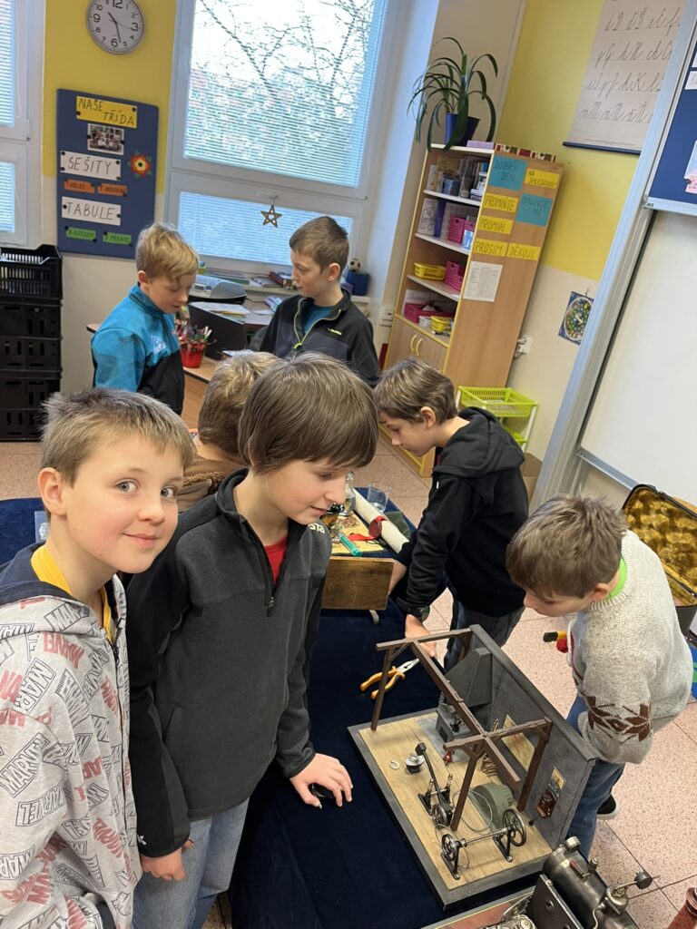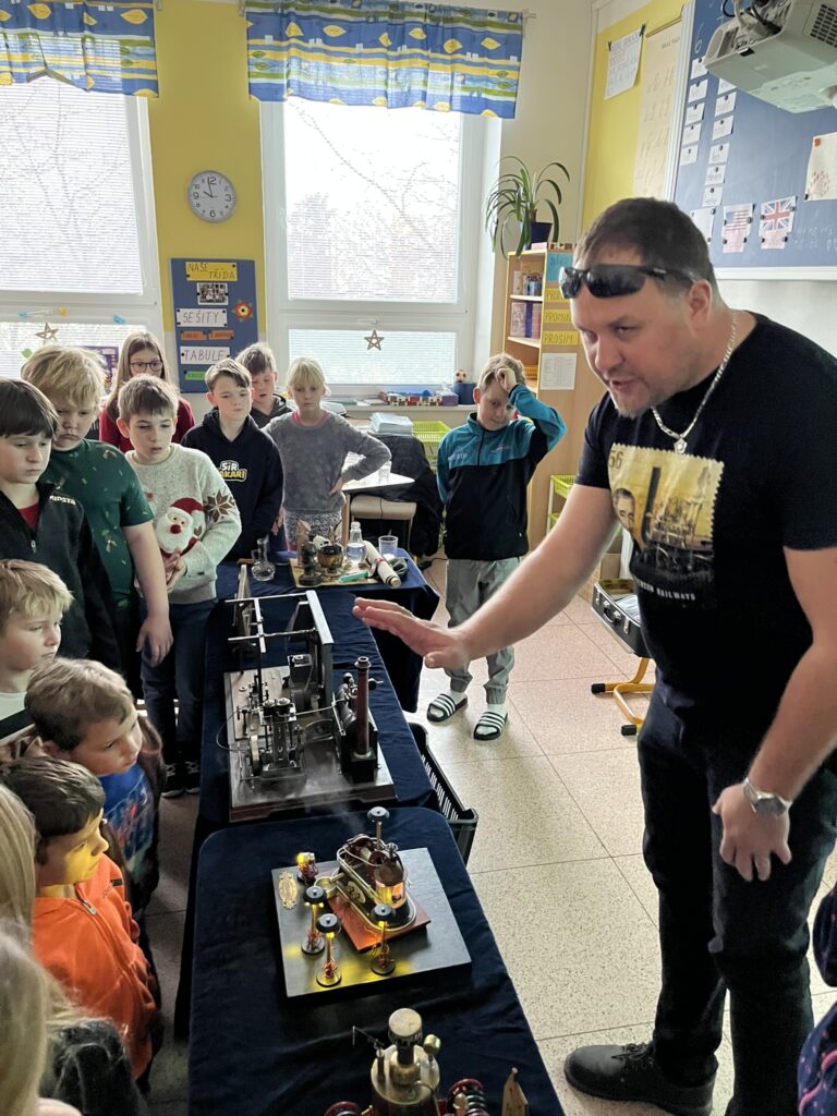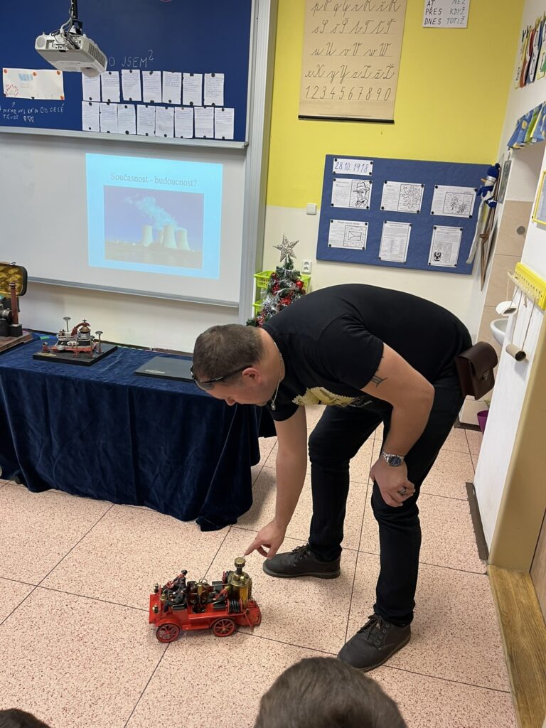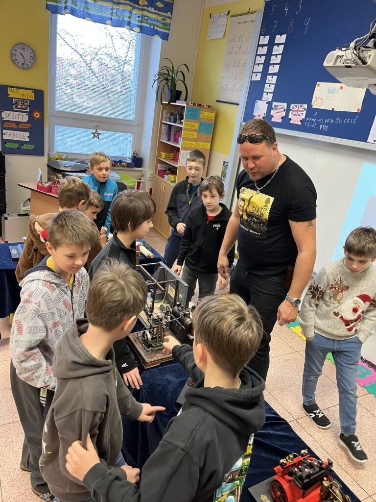 Na naší škole se uskutečnil koncem prosince vzdělávací program s názvem Plnou parou vpřed, který žákům poutavou a originální formou přiblížil fenomén parní energie a její význam v historii lidstva. Tento zábavně-poučný projekt nabídl jedinečný pohled na sílu páry prostřednictvím funkčních modelů, které názorně ukazovaly technický pokrok napříč dějinami. Programu se zúčastnily 3. a 5. třídy společně se třídou 4.B. Celým programem nás provázel Míla Vaváček, jehož nadšení pro téma a poutavý výklad významně přispěly k celkově velmi pozitivní atmosféře akce. Děti měly možnost nejen parní modely zkoumat, ale také se aktivně zapojit. Prezentace parních vynálezů vnesla do dnešní uspěchané doby nostalgické kouzlo starých časů a všichni v tu chvíli zapomněli na novodobou technologii.