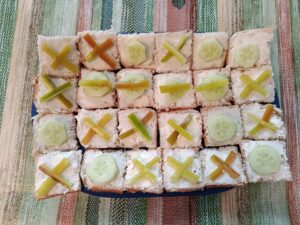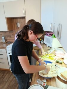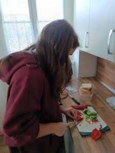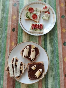 Jedna z možností, jak hodinu využít, je strávit ji v kuchyňce a připravit něco dobrého nejen pro sebe, ale i pro své učitele a spolužáky. Děvčata z 8.tříd měla tentokrát příležitost proniknout do tajů studené kuchyně a projevit svou fantazii a kreativitu při zdobení toustů. Většina dívek se nechala inspirovat internetem, některé  byly již naladěné na blížící se halloween a vytvořily halloweenské pohoštění dle vlastní fantazie. Dívkám se povedlo vykouzlit motivy třešní, tulipánů, motiv hry piškvorky, ale i strašidelné halloweenské duchy a jiná monstra, rakve apod. Ke zdobení jsme použily např.okurky, papriku,rajčata, k namazání toustů pomazánkové máslo, žervé, tavený sýr nebo i nutellu, takže jsme připravily vlastně takovou „zdravou svačinku“.