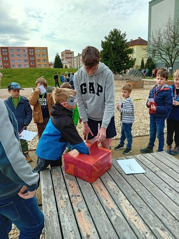 S organizací a přípravou pomáhali i žáci z II. stupně a za to jim děkujeme! Akce se vydařila! Děti byly velmi hodné, ukázněné a hra je bavila. Stejně tak i nás, vychovatelky. Počasí nám přálo a prostředí školní zahrady dokreslilo tu správnou atmosféru pro naší akci!