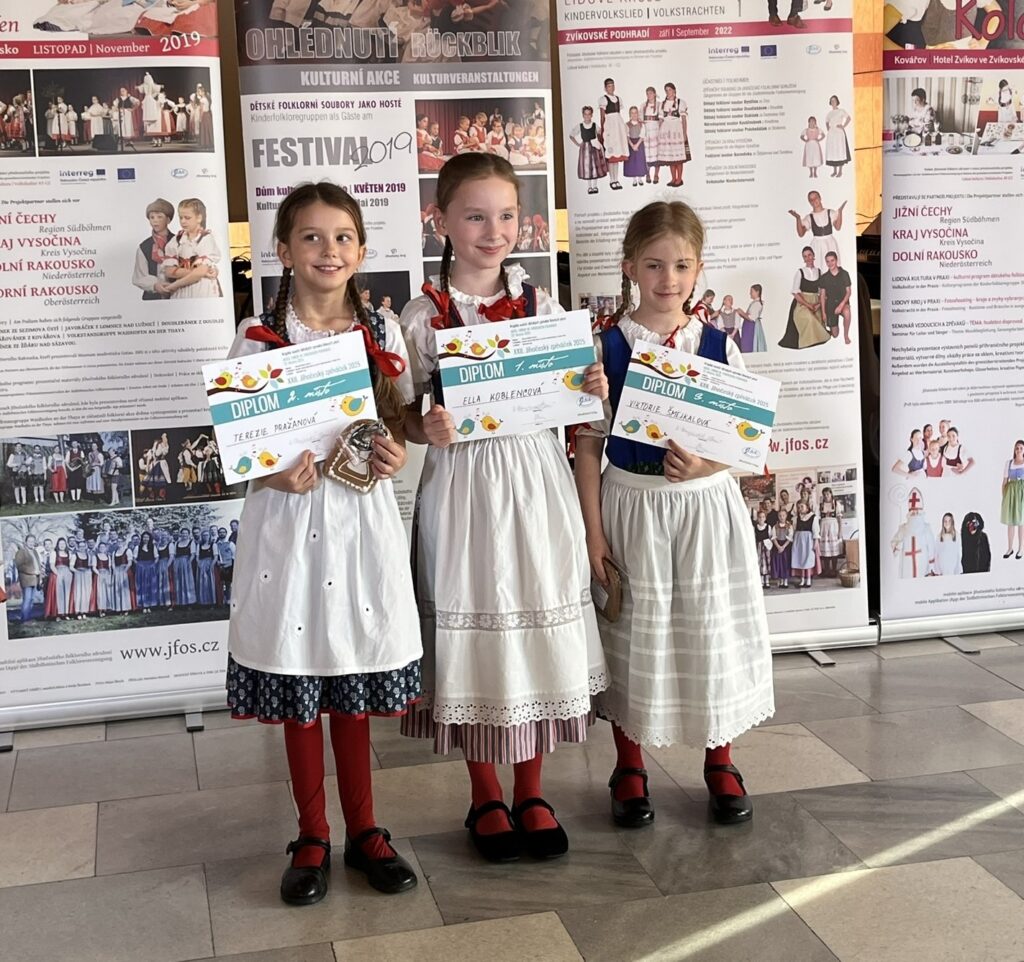 V mladší kategorii do 9 let vystoupili sourozenci Vítek a Viktorka Šmejkalovi, zatímco v kategorii starších žáků (9–15 let) naši školu zastupovala tři děvčata – Sára Tvrdoňová, Julie Charvátová a Bětka Martínková. Všichni podali vynikající výkony a dokázali, že lidová píseň v podání mladých talentů má stále své kouzlo.