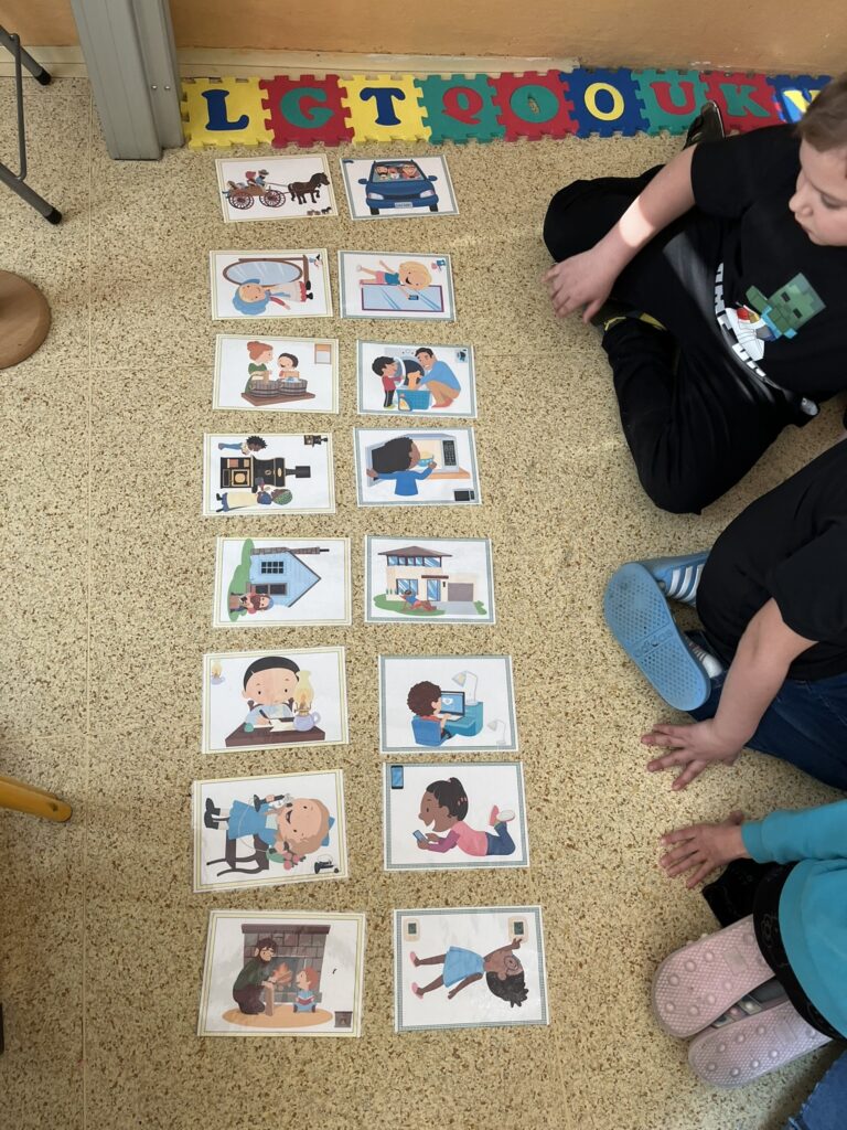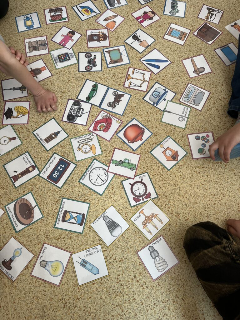 Porovnávali jsme, jak vypadal život dříve a jak žijeme dnes. Zaměřili jsme se například na to, jak vypadala škola v minulosti, co lidé jedli, jaké používali předměty, jaká existovala řemesla, jak lidé bydleli a oblékali se. Děti velmi zaujalo zjištění, jak velký pokrok lidstvo udělalo a jaký blahobyt máme v současné době.