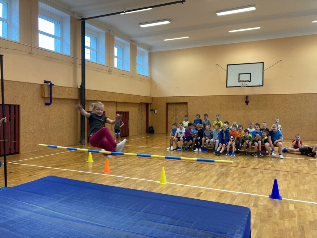 V pátek 1. listopadu 2024 proběhla na prvním stupni tradiční soutěž ve skoku do výšky „Podzimní laťka“.