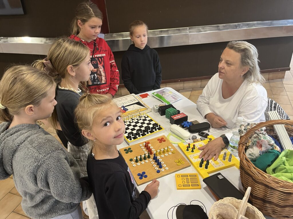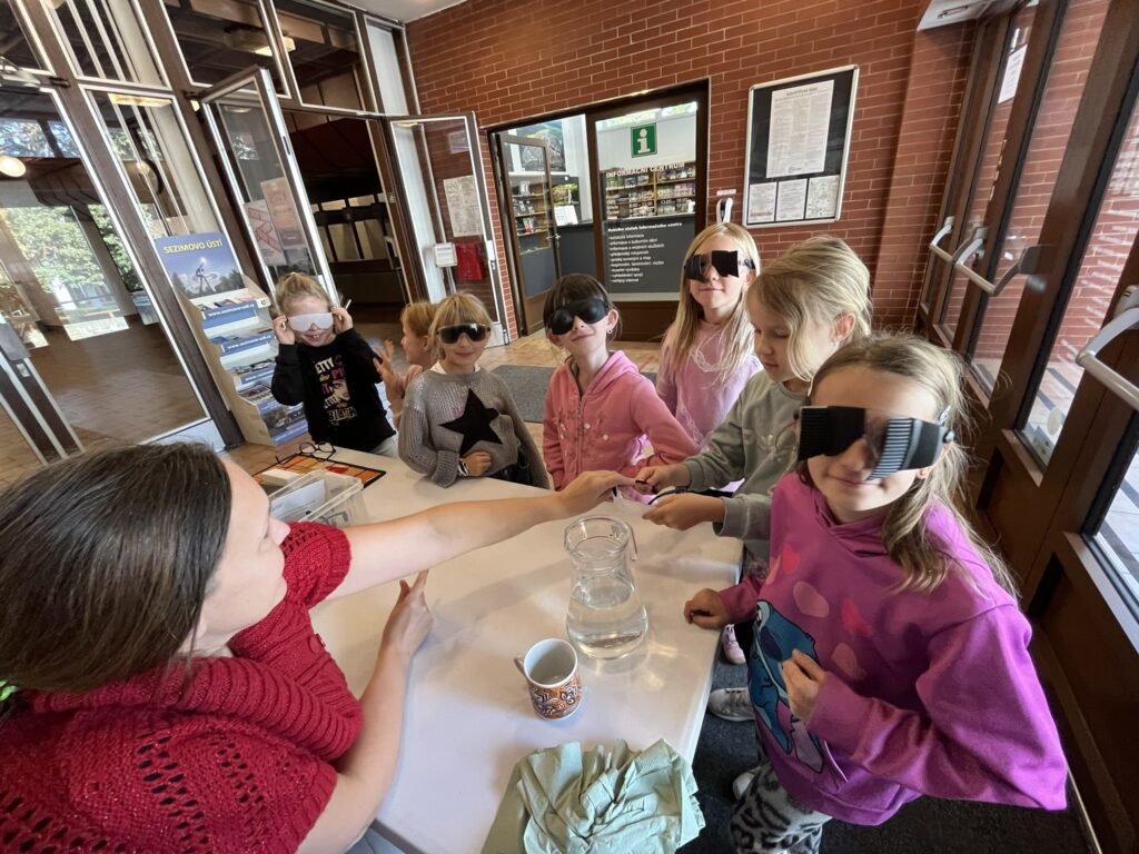 Na dalších dvou stanovištích pracovaly lektorky, které s nevidomými lidmi dlouhodobě spolupracují. Dětem ukázaly speciální pomůcky, například indikátor nalévání vody do hrníčku. Velký zážitek přinesly i speciální brýle, díky nimž si mohly děti vyzkoušet, jak vypadá vidění se šedým zákalem, po mozkové příhodě nebo se zbytky zraku.