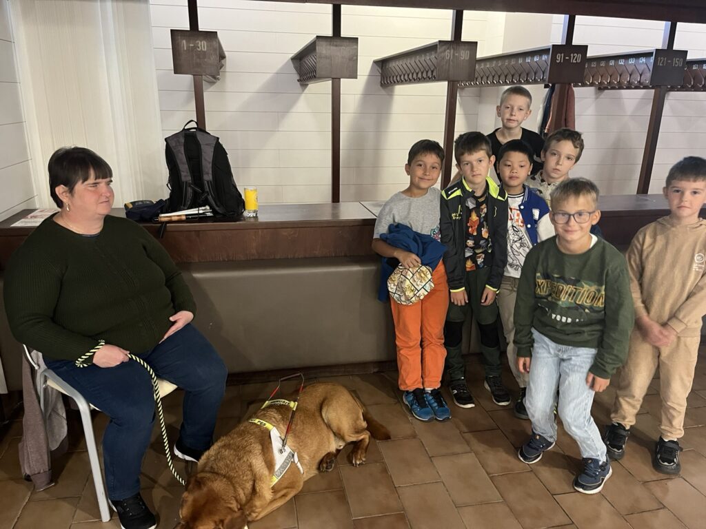 Na prvním stanovišti se děti dozvěděly o vzniku Braillova písma, prohlédly si knihy a omalovánky pro nevidomé a samy si vyzkoušely psaní na stroji pro slepce. Další lektorka přišla se svým vodicím psem a vyprávěla o tom, jak takový pes pomáhá v každodenním životě i jak probíhá jeho výcvik. Na třetím stanovišti se děti seznámily se společenskými hrami pro nevidomé a vyzkoušely si mobil i hodinky uzpůsobené lidem se zrakovým postižením.
