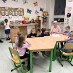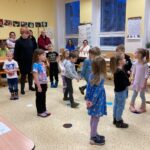Druhé setkání proběhlo o čtrnáct dní později, koncem ledna. Tentokrát se předškoláci seznámili s paní učitelkami 1. stupně, které si pro ně připravily aktivity zaměřené na procvičování základních školních dovedností a dovedností potřebných k zápisu do 1. třídy. Program byl zahájen vystoupením pěveckého sboru pod vedením Jany Reisnerové.