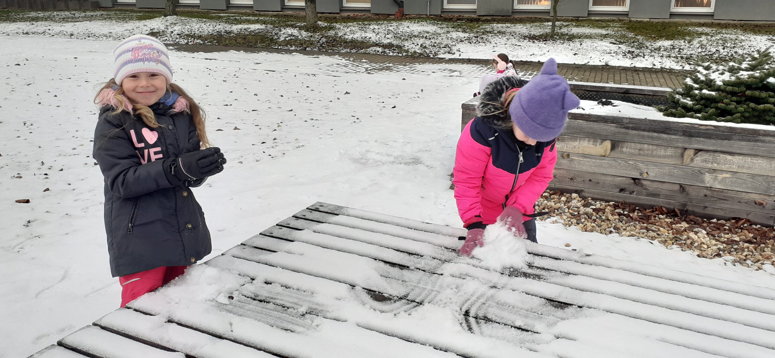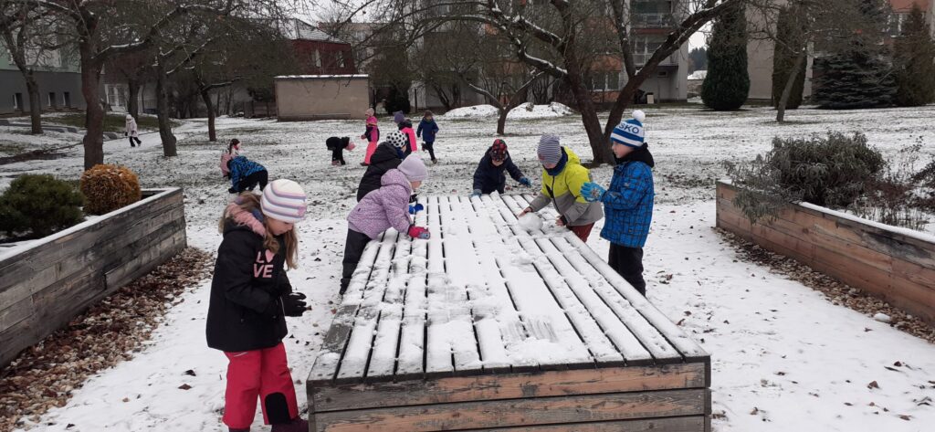 Ve středu jsme si užili sněhové nadílky na zahradě školy.