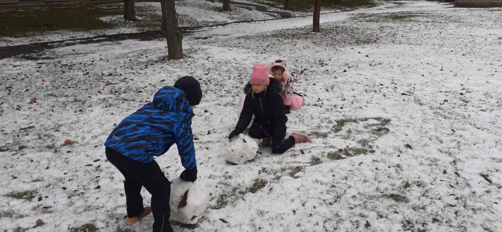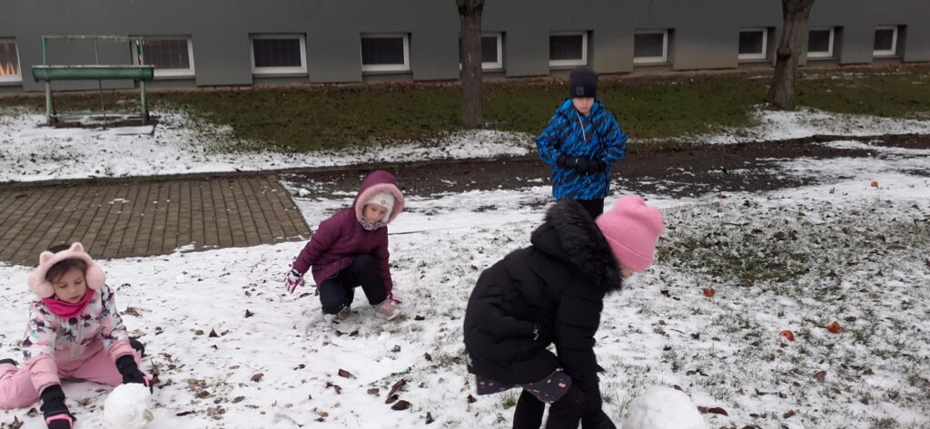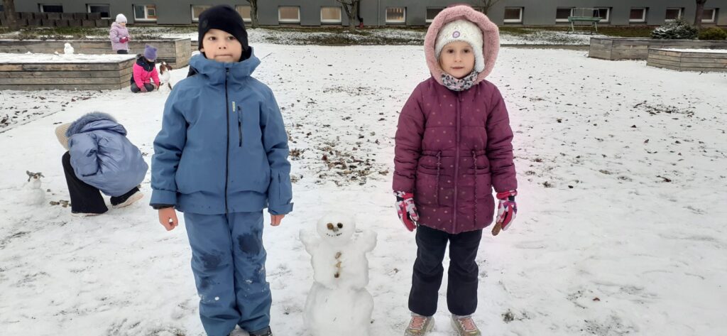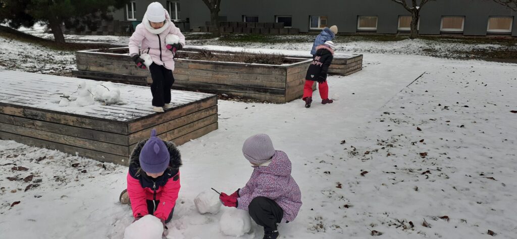 Tvořivosti se meze nekladly, společně jsme si hráli ve sněhu a vytvořili jsme krásné velké i malé sněhuláky, ze kterých jsme měli obrovskou radost.