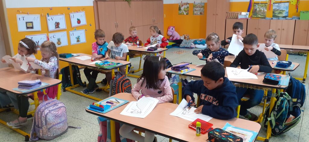 Nejprve jsme se podívali na legendu o sv. Martinovi. Vysvětlili jsme si dobrý skutek, který Martin udělal, když dal polovinu svého pláště žebrákovi.