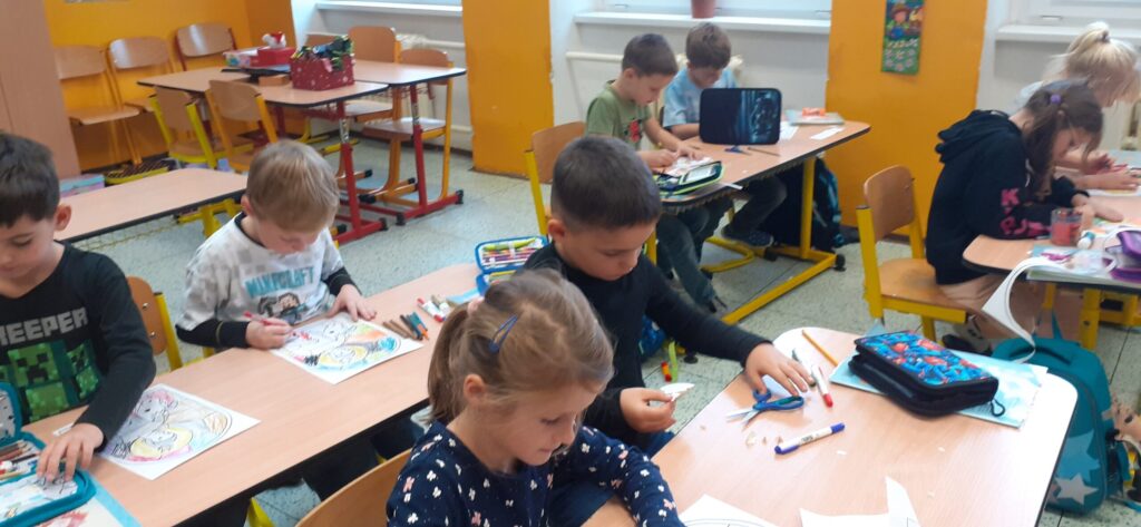 Následovalo počítání podkoviček a malování vitráže s obrázkem sv. Martina.