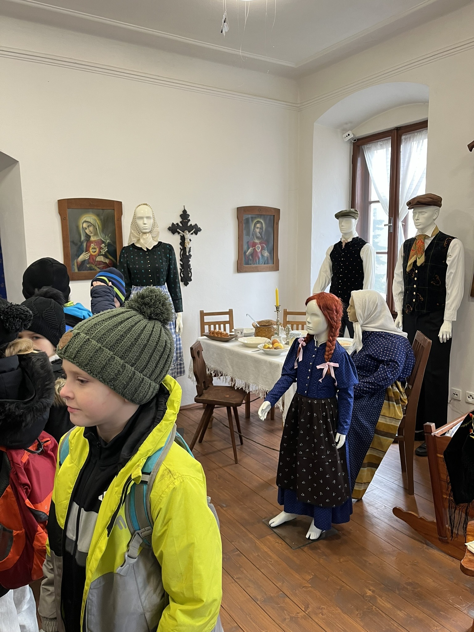 Třídy 3. A, 3. B a 4. B se vydaly na vánoční výstavu do Plané nad Lužnicí, která nás přenesla do atmosféry Vánoc dávných časů. Výstava byla citlivě a přehledně koncipována a rozdělena do dvou místností. První část představovala chalupu obyčejných venkovských lidí v období Vánoc, druhá pak měšťanský dům. Děti měly možnost vidět, jak vypadala štědrovečerní tabule v minulosti, včetně tradičního jídla, které lidé o Vánocích připravovali, výzdoby místností i vánočně ozdobené stromky a porovnat, jak se slavily Vánoce dříve. Ke zhlédnutí bylo i oblečení v tehdejší době.
