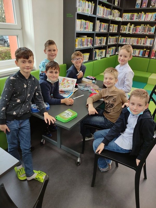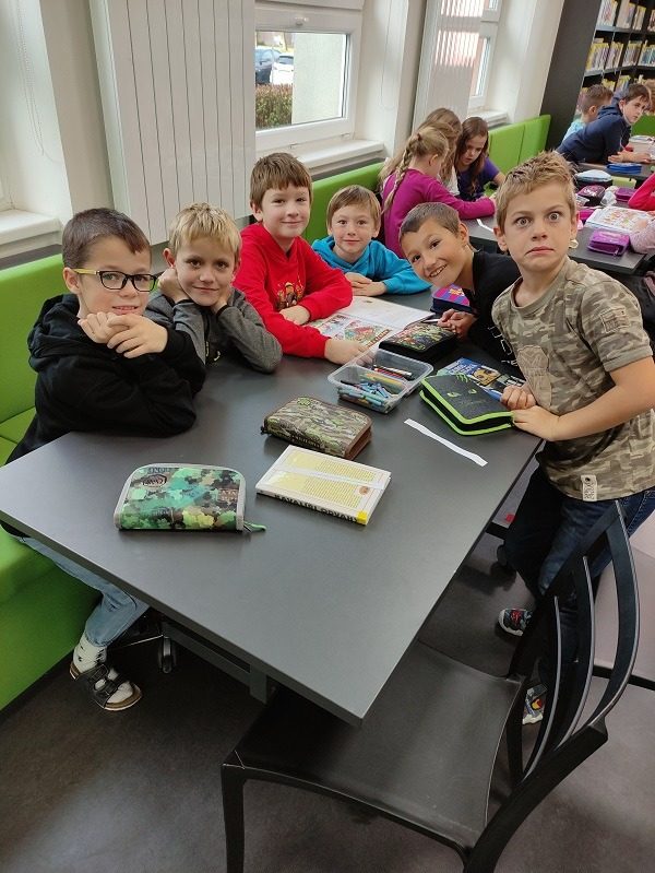 V podzimním období třídy 3.A a 3.B navštívily knihovnu. Po dlouhé pauze jsme se moc těšili. Čekal nás program s názvem Čtyřlístek. Nejprve jsme se potřebovali opětovně zorientovat v knihovně. Poté jsme si prohlédli knihy, které se vztahují k tématu Čtyřlístek a představovali jsme si hlavní postavy. Hráli jsme různé hry k tomuto tématu a na závěr doplňovali vlastní komiks. Program se nám velice líbil a už se těšíme na další.