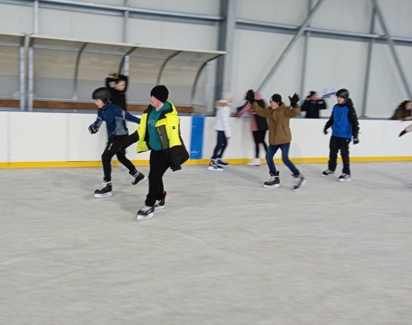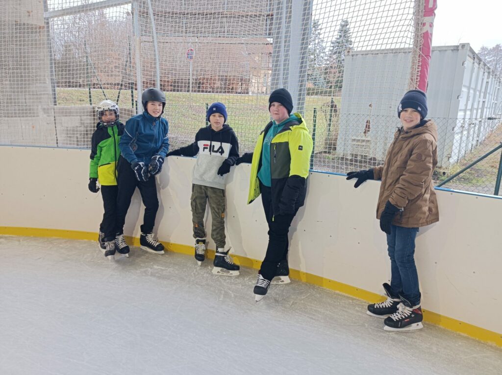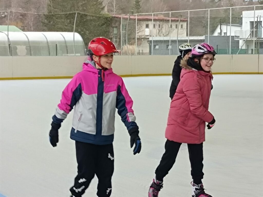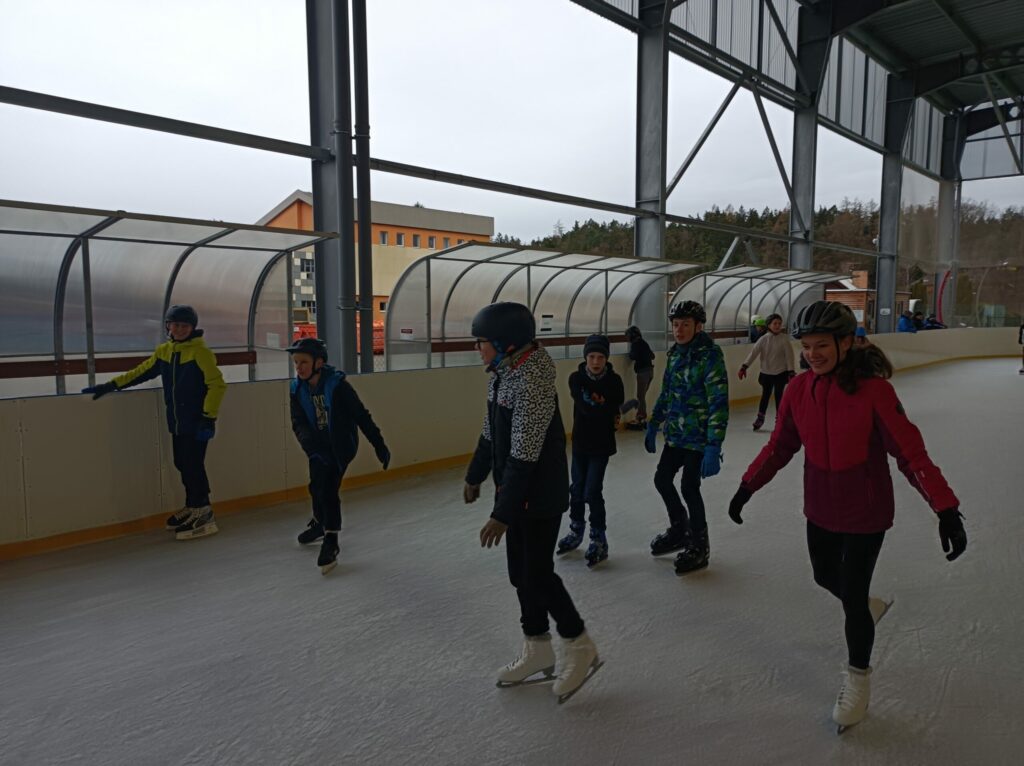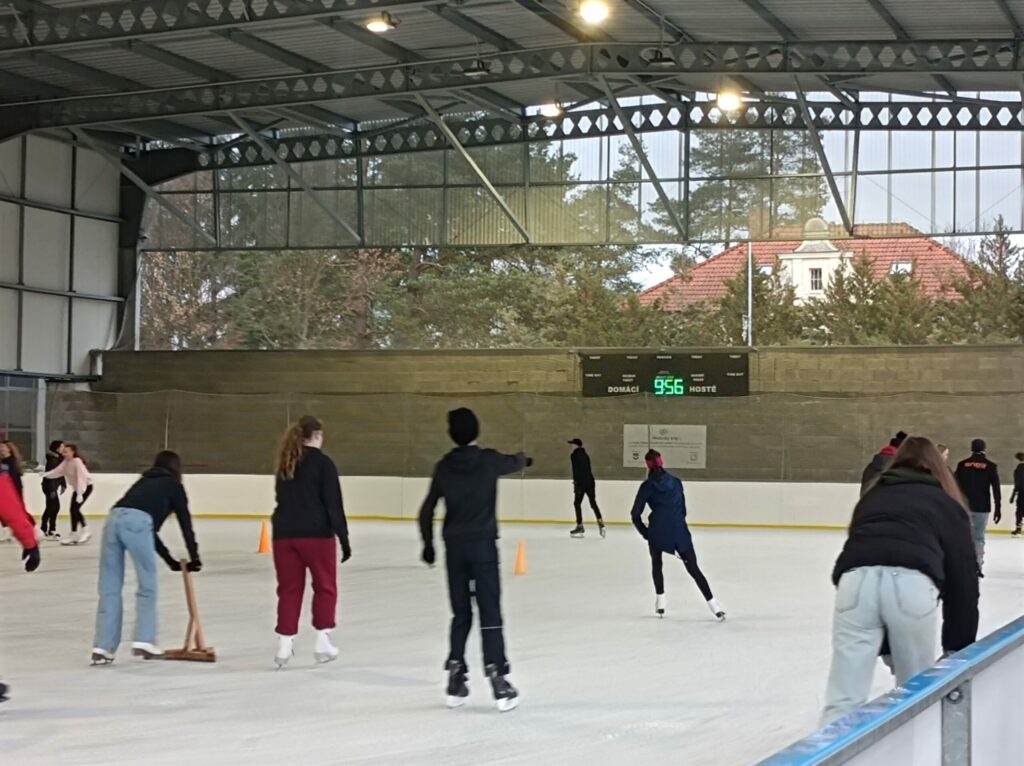 Skupina zájemců o bruslení byla rozdělena na dvě skupiny. První tvořící osmé a deváté ročníky vyrazila hned na devátou hodinu, o šedesát minut později vstupovali na kluziště mladší žáci. I když mnozí již nějaký ten pátek na bruslích nestáli a byla z nich cítit nervozita, po pár odrazech na ledovém zrcadlu se sebevědomí vrátilo a po polovině určeného času již nebylo poznat, kdo si zpočátku nevěřil.