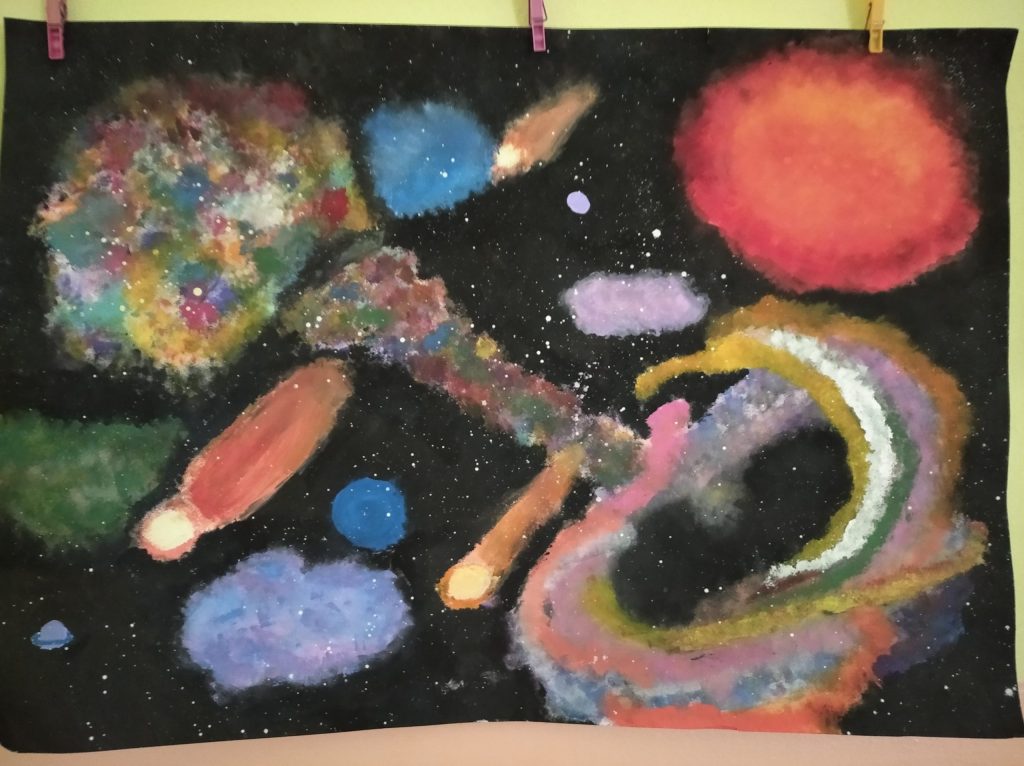 S upřímnou radostí konstatuji, že ač s omezením několikadenními karanténami nemoci covid-19, výuka výtvarné výchovy v tomto školním roce nedoznala větších trhlin. Opět jsme se společně studenti i já ponořili do tvorby s různou tématikou a technikami, z nichž si některé děti zkusily poprvé. Některé práce tvořily abstraktně a dekorativně, jiné představují konkrétní objekty či postavy. Ukázky našeho společného snažení si můžete prohlédnout na fotografiích.