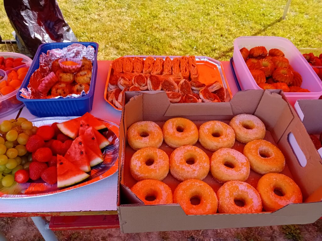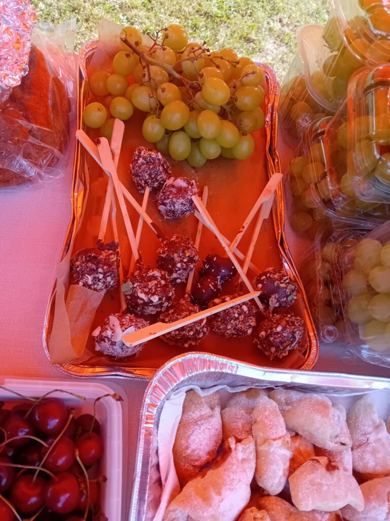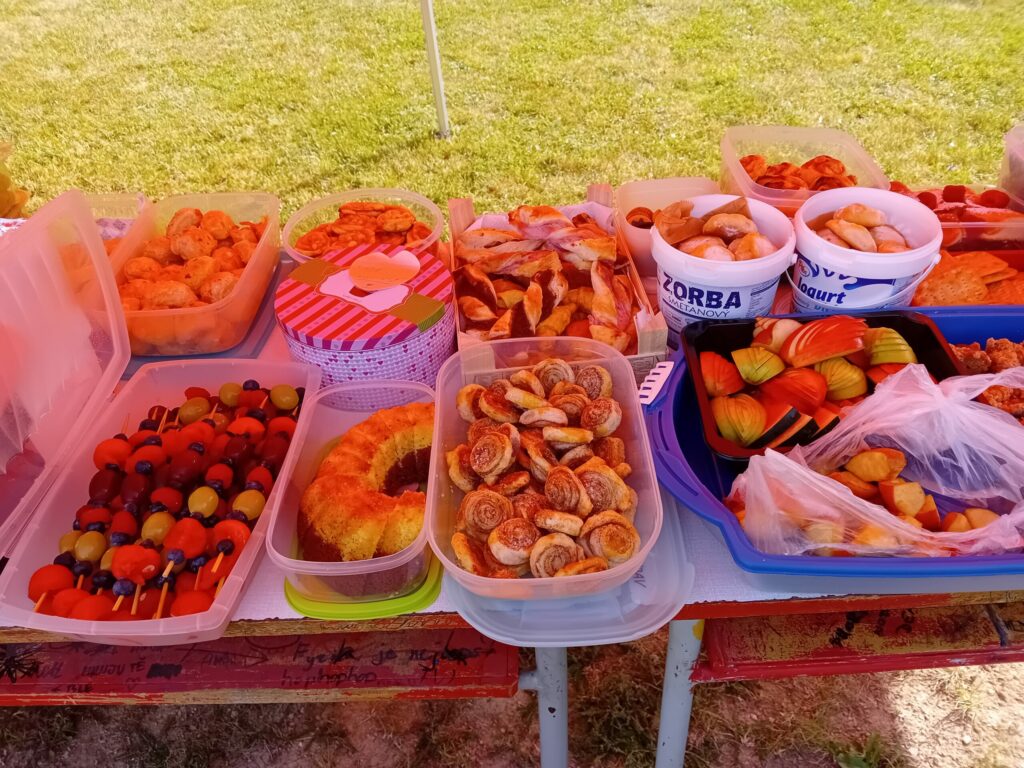 Ale hlavní a velký dík patří maminkám, babičkám, tetám a i tatínkům, kteří nám pomohli vytvořit opravdu obrovský piknik!!! K snědku bylo nachystáno vše, na co si děti vzpomněly…Muffiny a koláče, bonbóny, chipsy, ovoce, zelenina, tyčky, bábovky, slaní šneci a sladcí šneci, popcorn, křupky…prostě sladkého a slaného, chutí na vybranou. Děkujeme za skvělý raut a krásné dopoledne.