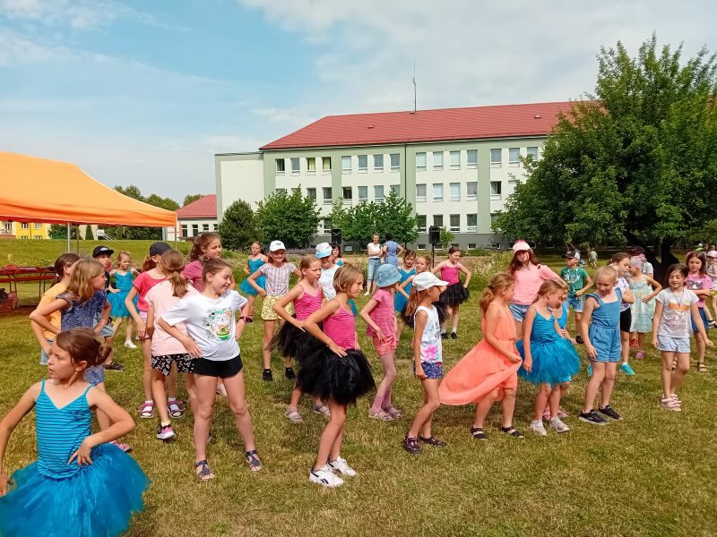 Dnes 20. 6. 2023 dopoledne jsme se na zahradě školy pomyslně rozloučili se školním rokem a přivítali léto!