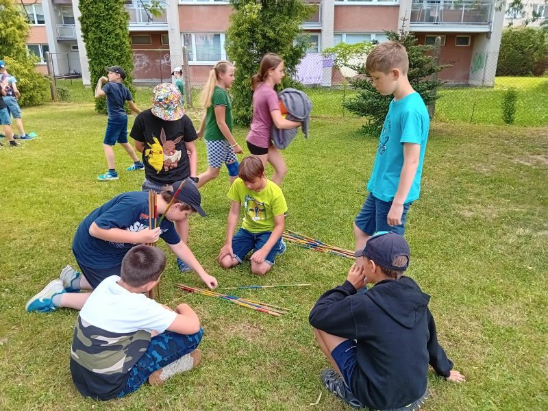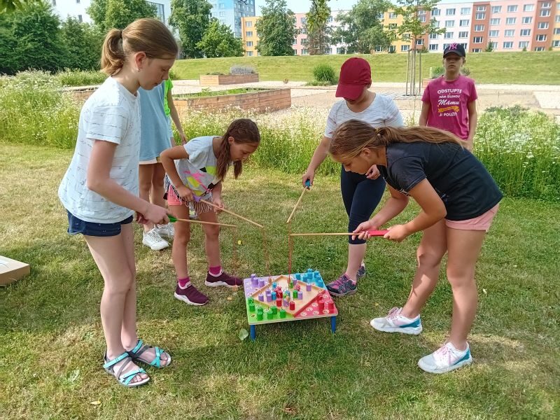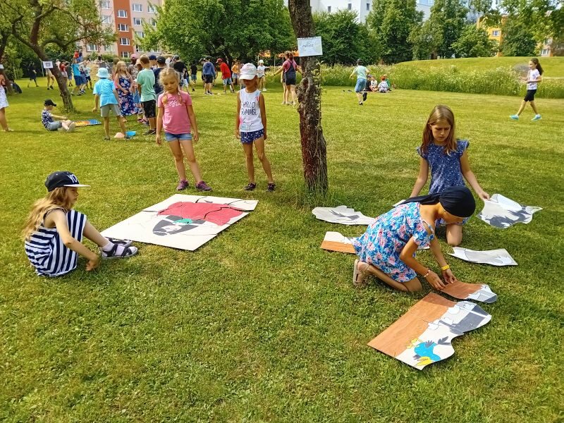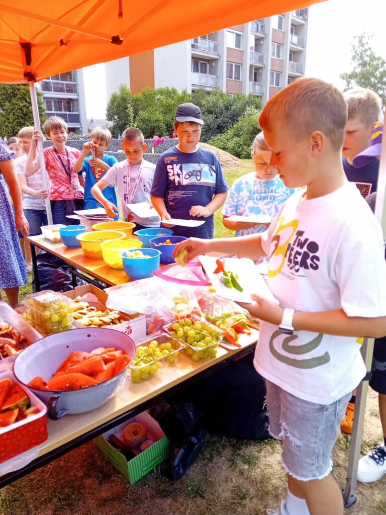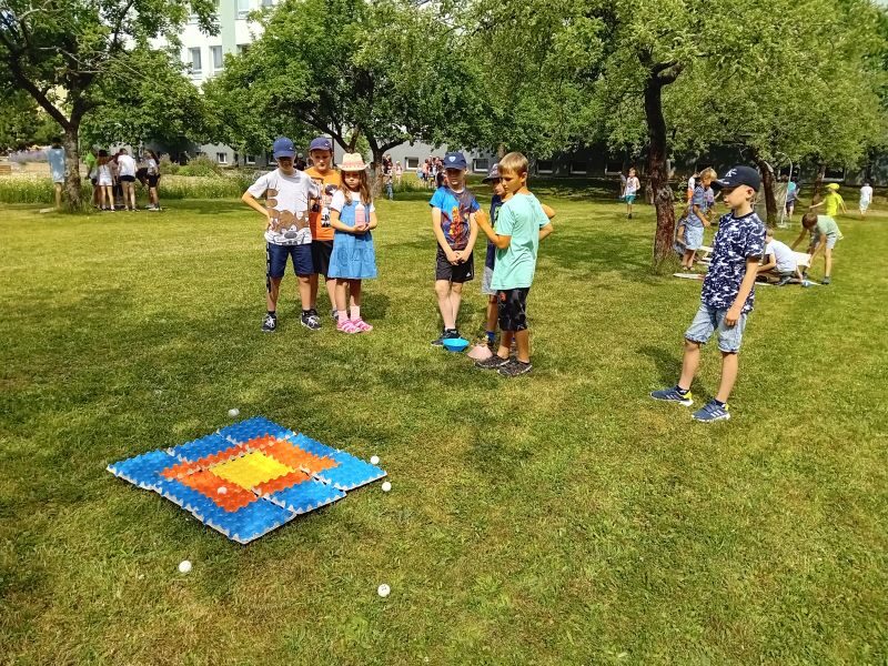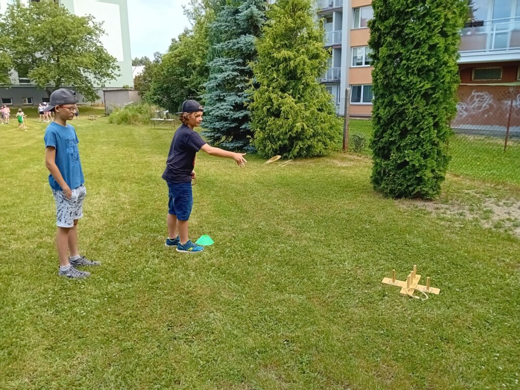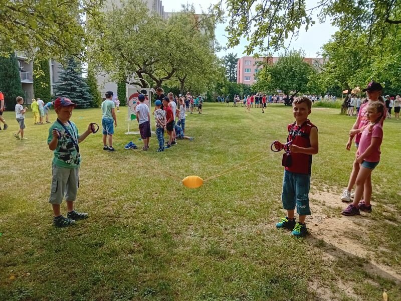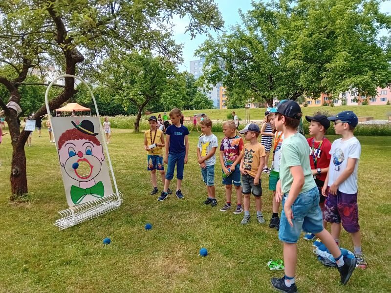 Párty výzdoba, hry, občerstvení, hudba k tanci i poslechu…Jednotlivá stanoviště si děti obcházely podle své volby a hrály si tam, kde je to zaujalo. Mezi nejoblíbenější patřilo velké dřevěné mikádo, míčkochytače, šašek, srážění plechovek a i Fanfrnoch či kbelíkové chůdy…dále si děti mohly vyzkoušet střelbu do plat či na tyčky, chůzi na dřevěných lyžích a skládání obřích puzzlí.