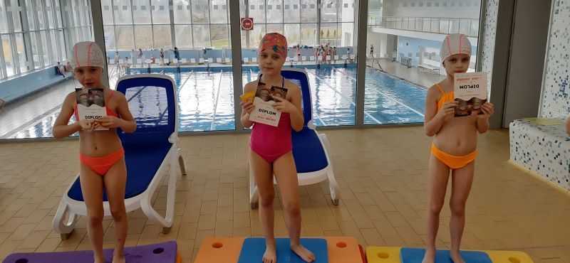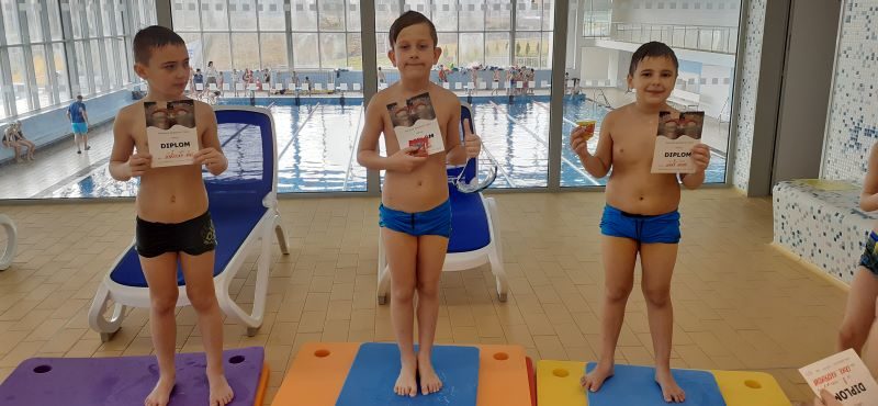 Po skončení závodu se šly děti ohřát a pohrát si do malého bazénku. Paní plavčice zatím zkontrolovala časy a napsala diplomy pro nejlepší tři závodníky.
